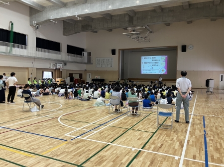 本学と船橋市が協定を締結している、環境に関する連携協定の一環として、 「アースドクターふなばし」からの依頼で、船橋市立塚田南小学校にて海洋マイクロプラスチック汚染について講演しました。