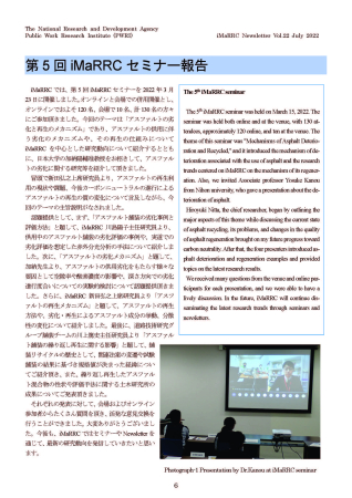 加納先生が講師を務めた(国研)土木研究所主催第5回iMaRRC(先端材料資源研究センター)セミナーの報告記事が貴所HPより公開されました。 今回のセミナーでは「アスファルトの劣化と再生のメカニズム」をテーマとして、加納先生はアスファルトの供用劣化をもたらす様々な要因に着目し、空隙率や酸素濃度の影響、深さ方向における劣化の進行を実験的検討に基づいて講義しました。詳しくは、下記HPをご参照ください。 https://www.pwri.go.jp/team/imarrc/index.html